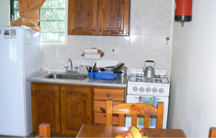 Además cuenta con 25 confortables bungalows tipo departamentos con capacidad para 6 personas, con baño privado, habitación matrimonial independiente, vajilla para todos los ocupantes, TV, anafe y heladera.