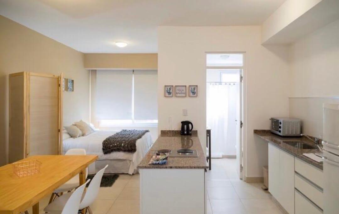 La Casona cuentan con baño privado, ventilador, estufa, ropa blanca y toallas, TV c/ cable en hall central, Wifi y elementos de higiene.
